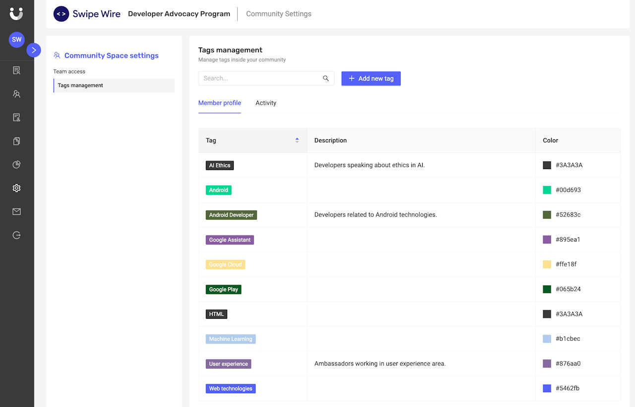 Here you'll see all the tags that can be assigned to your Member profiles.